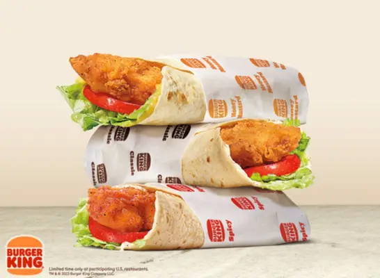 Per coloro che ancora piangono per gli snack di McDonald's, Burger King è partito quest'anno per colmare il divario. Ad agosto, la catena di Amburgo ha istituito una nuova linea limitata per il tempo limitato di veri involucri nitidi, che è attualmente associata in tre gusti: classico, senape piccante e miele. Ogni imballaggio è costituito da una tortilla di farina morbida piena di pollo, pomodori e insalata di carne bianca croccante e una selezione di salsa.