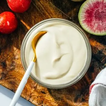 In questa ricetta vegana per il condimento ranch, la crema di anacardi è la stella! Aggiunge ricchezza e aiuta il condimento ad aderire alla lattuga e alle verdure. Aggiungi alla crema di anacardi alcune deliziose spezie: aglio in polvere, cipolla in polvere e aneto essiccato. Ha un sapore delizioso subito, ma conservare in frigorifero per alcune ore per far sì che i sapori si fondano e per fissare la consistenza.