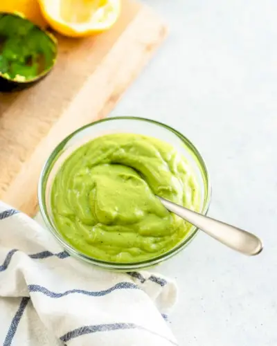 Questo condimento per insalata di avocado vegano, cremoso e sognante, è caratterizzato da avocado verde maturo, limone piccante e un ingrediente segreto: olio di avocado! L'olio di avocado apporta un'essenza di puro avocado, essendo allo stesso tempo un olio fantastico da aggiungere alla tua dispensa.