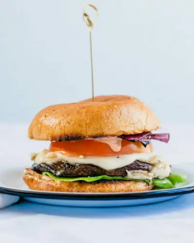 Ti presento: il tuo perfetto hamburger ai funghi portobello. Questo gigantesco fungo carnoso è irresistibile da solo. Ma aggiungilo a un panino per hamburger e ricoprilo di condimenti, ed è assolutamente scandaloso! È la ricetta vegetariana estiva perfetta e puoi prepararla alla griglia o arrosto. Certo, lo preferiamo grigliato e mangiato nel patio con l'odore del carbone che si diffonde... ma siamo solo noi!