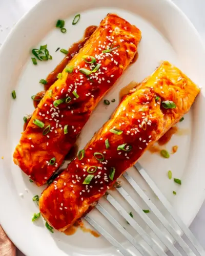 Quando si tratta di sapore e semplicità, questa ricetta di salmone all'aglio e miele è all'altezza. Il salmone viene fritto in padella per ottenere un esterno marrone e scottato, quindi cotto in forno finché non diventa perfettamente tenero. Immergi tutto in questo appiccicoso salsa all'aglio e miele , una glassa dolce e salata che aggiunge strati di complessità.