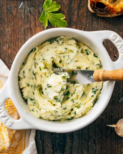 Prova questo semplice burro all'aglio: una crema spalmabile così deliziosa che non riuscirai a staccarti dal piatto. Spalmatelo sul pane croccante, o meglio ancora mettetelo in forno per fare il pane all'aglio. Oppure provalo come burro composto su bistecca, patate al forno o arrosto e altro ancora. Fin dal nostro primo assaggio, siamo rimasti colpiti: e sappiamo che lo sarai anche tu.