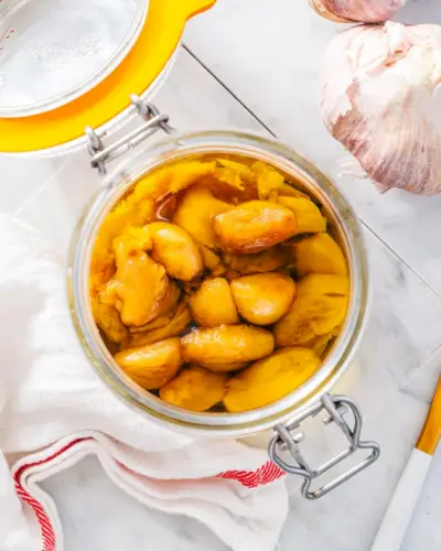 Ecco un condimento straordinario: confit di aglio! La cottura lenta degli spicchi d'aglio nell'olio li fa dorare e fa risaltare un sottile sapore di aglio assolutamente divino. Puoi utilizzare il barattolo in due modi: schiacciare l'aglio tenero su crostini di pane come antipasto spalmabile, oppure utilizzare l'olio infuso per cucinare. Aggiungilo a salsa per pizza , vinaigrette o usatelo per saltare: il cielo è il limite!