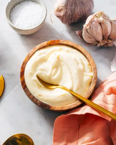 L'Aioli è così cremoso e delizioso, cosa non amare? Questa crema spalmabile e salsa è perfetta per panini, patatine fritte , pesce alla griglia , frittelle e altro ancora, e ci sono tantissime divertenti variazioni di sapore. Questa salsa aioli all'aglio con 3 ingredienti semplice e veloce si prepara in pochi minuti!
