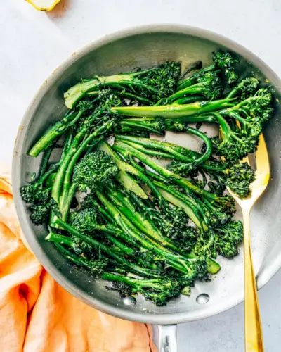 Quando si tratta di contorni veloci e di grande effetto, questo potrebbe essere il top: broccolini saltati! Gli steli elegantemente lunghi di questa verdura verde la fanno sembrare stravagante, ma ecco un segreto. Puoi cucinarlo in soli 5 minuti in una padella calda. Aggiungi un po' di aglio e limone e non potrai smettere di mangiare questi lance irresistibilmente grandi.