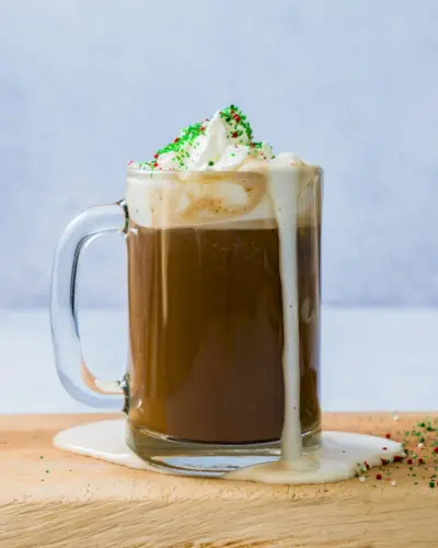 Alla ricerca di un dolce, sontuoso bevanda calda per Natale? Inserisci la cioccolata calda Kahlua! Questa bevanda cremosa è ricca di sapore: cioccolato fondente, note di vaniglia e il finale di rum e caramello di Kahlua. Il Kahlua è sfumato e sottile, ma è lì: aggiunge un effetto riscaldante ad ogni sorso. Se sei un fan di questo liquore al caffè, questo è il cocktail di Natale che fa per te.