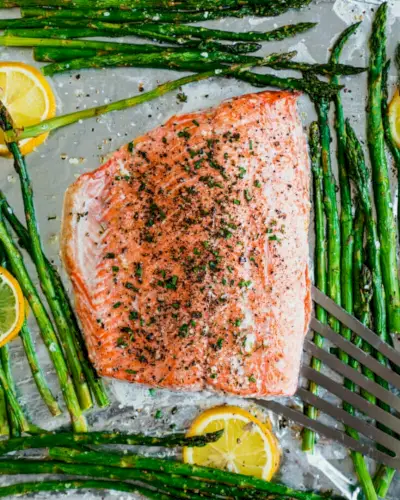 Un'idea per la cena di stasera: preparate il salmone e gli asparagi in una teglia! È semplice, è elegante, ma ha il sapore di qualcosa che ordineresti al ristorante. Arrostirlo su una teglia con fette di limone ed erbe fresche aggiunge un sapore semplice che risulta fresco ma raffinato.