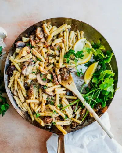 Non vorrai smettere di mangiare questa ricetta di pasta ai funghi! Il suo sapore saporito e burroso si arricchisce di aglio, limone e parmigiano. Questo piatto ha la giusta proporzione tra funghi e pasta, in modo che ogni boccone abbia un generoso tocco di sapore.