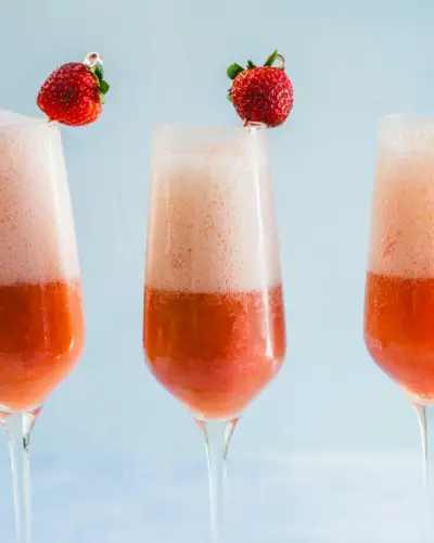 La classica mimosa vede protagonista succo d'arancia e champagne: ma perché non aggiungere al mix anche fragole dal rosso acceso? Frullare le fragole fresche con il succo d'arancia aggiunge note fruttate di frutti di bosco al palato. Ancora meglio, il colore è vivacemente rosato! È sorprendente cocktail del brunch che rende ogni occasione più festosa.