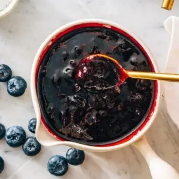Questa ricetta per lo sciroppo di mirtilli è dolce e semplice: perfetta per utilizzare i mirtilli freschi o surgelati! Servire su pancake, gelati e altro ancora.