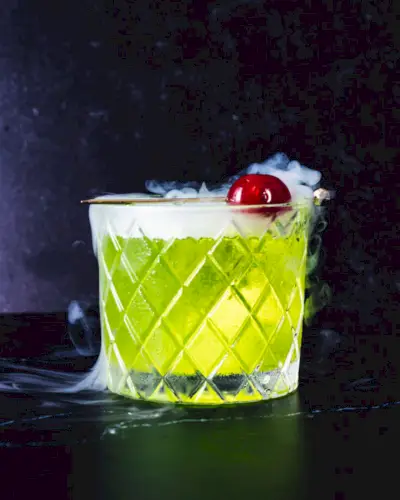 Cerchi un impressionante cocktail di ghiaccio secco al neon? Prova la Birra delle Streghe! Il suo colore verde neon potrebbe sembrare minaccioso. Ma prendi un sorso ed è una crostata brillante e dolce, con sapori di melone e agrumi. L'aggiunta di ghiaccio secco fa bollire e bollire la birra, con un fumo magico che si diffonde nell'aria!