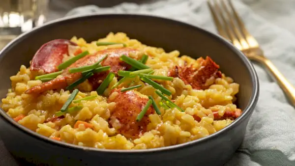 Tempo attivo: 1 ora Tempo totale: 30 minuti Porzioni: 4Un piccolo pizzico di zafferano contribuisce notevolmente a conferire una vibrante tonalità dorata e una fragranza floreale a questo risotto all'aragosta cremoso e indulgente. L'aragosta precotta e il succo di vongole in bottiglia offrono robusti strati di sapore con il minimo sforzo, rendendola una cena perfetta per la settimana. Dopo un po' di pazienza e mescolando spesso, otterrai la consistenza cremosa ideale del risotto in meno di un'ora.