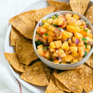 Hai mai provato la ricetta della salsa di pesche? In caso contrario, ti aspetta una sorpresa! Non solo la miscela delle pesche dolci e succose con le cipolle rosse piccanti è incredibilmente deliziosa, ma è anche piuttosto versatile. Potresti servirlo con patatine o cracker come antipasto. È la salsa di pesche perfetta per il pesce, o in un burrito o in un taco. Essendo un demone del dolce e del salato, ero in paradiso con questa ricetta di salsa di pesche fresche. Non vedo l’ora di condividere il modo semplice e veloce in cui l’abbiamo servito: è la mia nuova ricetta preferita per un fresco antipasto estivo!