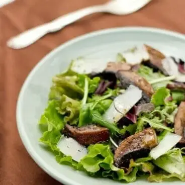 Questa ricetta di insalata di funghi portobello ha colpito nel segno. Non riesco a pensare a niente di meglio della gustosa bontà dei funghi arrostiti! (E odiavo quelle cose: odiatori di funghi, per favore, date a questo una possibilità). Erano un complemento perfetto al condimento piccante e alle verdure croccanti. Come condimento abbiamo usato il formaggio Manchego che avevamo a portata di mano, ma potresti usare qualsiasi formaggio che ti piace (magari un gouda stagionato o un cheddar?).