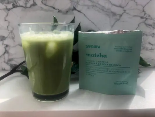 Quando ho preparato il Coconut Matcha, avevo iniziato la routine di impostare il bollitore a 185F e aggiungere da cinque a sei misurini di matcha. Stamattina avevo già riscaldato il bollitore e proprio mentre mi stavo preparando a prendere questo matcha dal Discover Your Matcha Kit, quando ho notato che questo sapore dovrebbe essere preparato solo a 170F e utilizzare da due a tre misurini, che sono le stesse direzioni del Matcha Matsu. Mentre aspettavo che l'acqua si raffreddasse, ho confrontato l'elenco degli ingredienti di tutti i miei matcha DavidsTea e penso che il Matcha al cocco abbia le stesse indicazioni dei matcha tradizionali perché questo sapore è senza zucchero. Dovrei anche notare che questa polvere di matcha aveva più grumi rispetto a tutti gli altri gusti, ma mi sono presa il tempo di setacciarla e non ho trovato grumi nella mia bevanda.