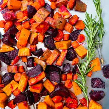 Questa ricetta di ortaggi a radice arrostita crea un brillante mix di verdure tenere! È il contorno stagionale ideale.