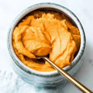 Questa deliziosa ricetta di purea di patate dolci è liscia come la seta! Servitelo come contorno o usatelo come componente di altre ricette.