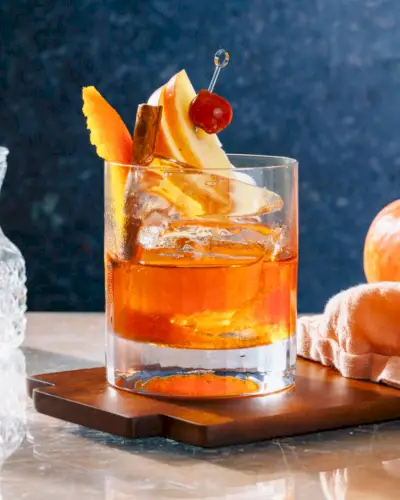 Ecco un divertente cocktail invernale ideale per ogni amante del whisky: prova l'Apple Cider Old Fashioned! Sostituendo lo zucchero con lo sciroppo di sidro di mele si infonde un sapore stagionale fruttato e speziato in questa bevanda classica. Ogni sorso ha note di mela e arancia, cannella e spezie, vaniglia e quercia. Se hai voglia di uno spettacolo alcolico, questo è il drink che fa per te!