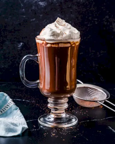 Vuoi un'accogliente bevanda invernale che ti riscaldi dall'interno? Non c'è niente di meglio per rilassarsi della cioccolata calda a spillo fatta in casa! Questa tazza di cacao liquido è ricca e cremosa, con un'intensa profondità di sapore di cioccolato. Un accenno di rum invecchiato o bourbon gli conferisce una calda complessità con note di vaniglia e rovere. Prendi un sorso e pensiamo che sarai d'accordo: è davvero sbalorditivo .